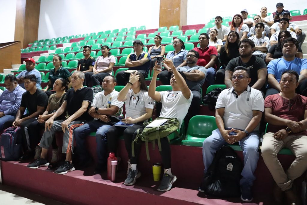 Para esta primera capacitación estuvo presente Andrea Cruz Hernández, coordinadora de Centros Estatales y Municipales del Deporte de CONADE. Los encargados de impartir el curso fueron Juan Ramón Pedraza Rivera y José Eduardo Bonilla Sánchez, representantes de CEDEM. La jornada se realizó en el Palacio de los Deportes “Erick Paolo” de la capital quintanarroense y contó con la participación de 60 entrenadoras y entrenadores de los municipios de Felipe Carrillo Puerto, Bacalar y Othón P. Blanco.